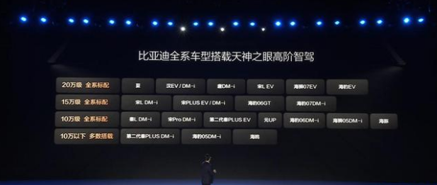 在今年2月的“天神之眼开创全民智驾时代”比亚迪智能化战略发布会上,王传福宣布比亚迪全系车型都将搭载高阶智驾,首批21款车型包括10万元以下、10-20万元级及20万以上车型,如汉、唐、宋、海豹、海狮、海豚、海鸥等各个车系/车型。
