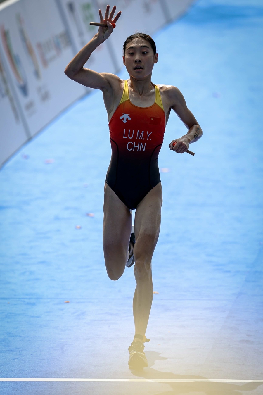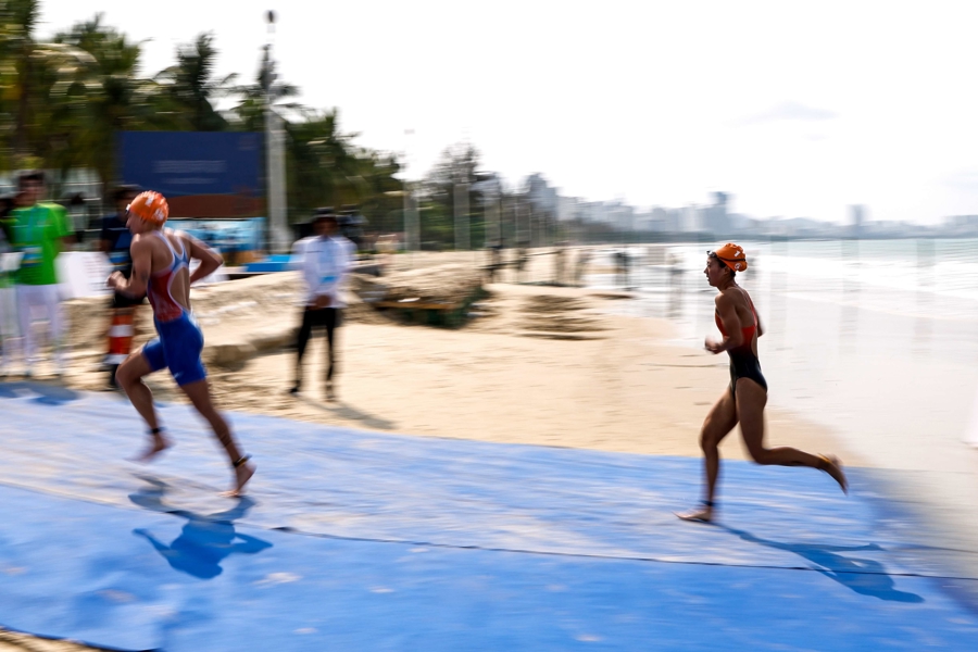 本次比赛极具挑战,选手需连续完成2.5公里跑步、1公里公开水域游泳及2.5公里跑步冲刺。林鑫瑜在水陆极限转换中全程保持极佳节奏,凭借在游泳与跑步环节的稳定表现率先冲过终点,成功摘得桂冠,这也是中国体育代表团在本届赛事拿下的第二金。柬埔寨选手加拉贝迪安获得亚军,另一位中国名将陆美伊同样登上领奖台,顺利将铜牌收入囊中。